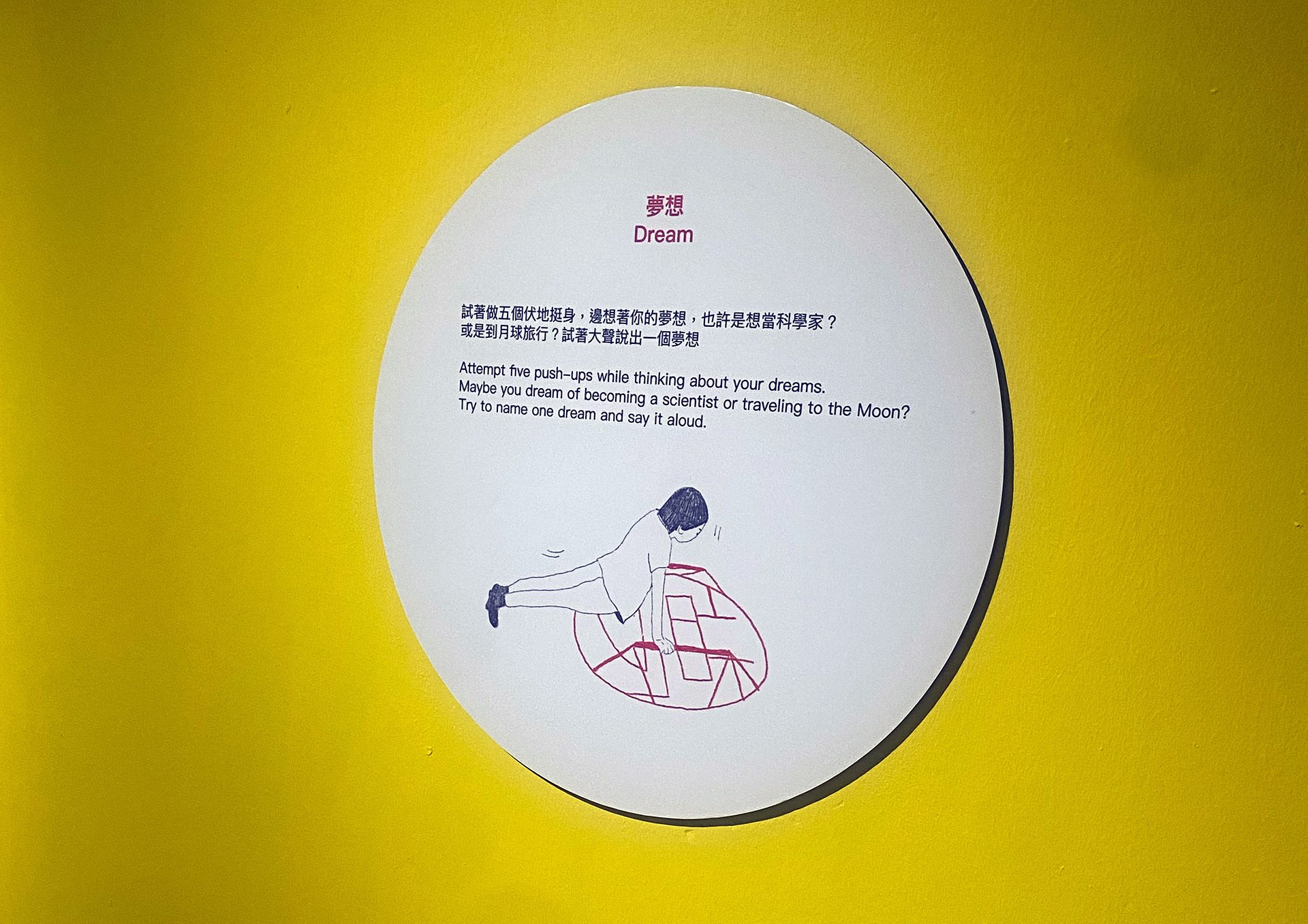 藝術家作品結合藝術與運動元素,並加入有關台灣的細節。展場設計成類似健身房,強調作品的互動性。