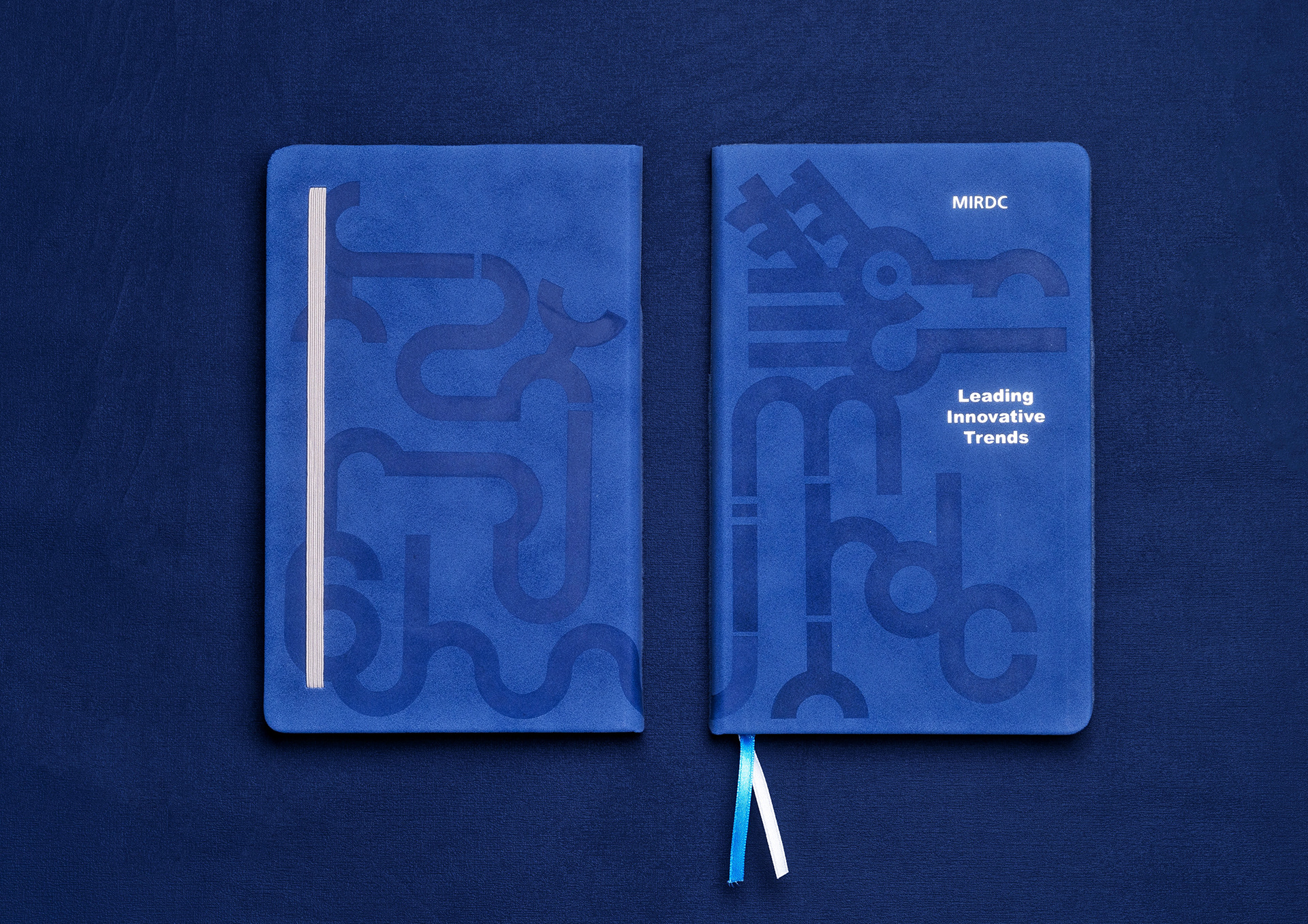 甲辰龍年金屬中心企廣處的筆記本設計,以直線、曲面勾勒出的龍形,龍的身形中還隱含了mirdc金屬中心的縮寫,以及創立61年的年度紀念。選擇企業色藍色為封面基調,以烙印方式加深龍形,企業標誌及標語燙銀。私版內頁也經過調整,包含適合創意發想的十字紋、適合書寫的橫紋兩種。雙色夾書帶以及後方的收納口袋,方便個人使用。