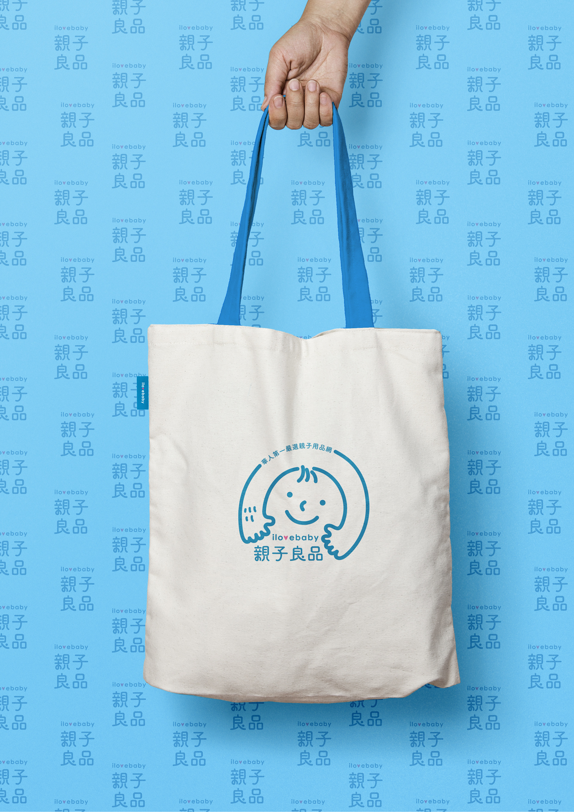 標誌概念:爸爸(有手毛的手)與媽媽(沒有手毛的手)環抱小孩,表達爸媽對小孩的保護與照顧,也展現全家幸福的感受。這樣的概念也是傳達親子良品的品牌精神, 父母能在此網站為小朋友選擇最安心的產品。