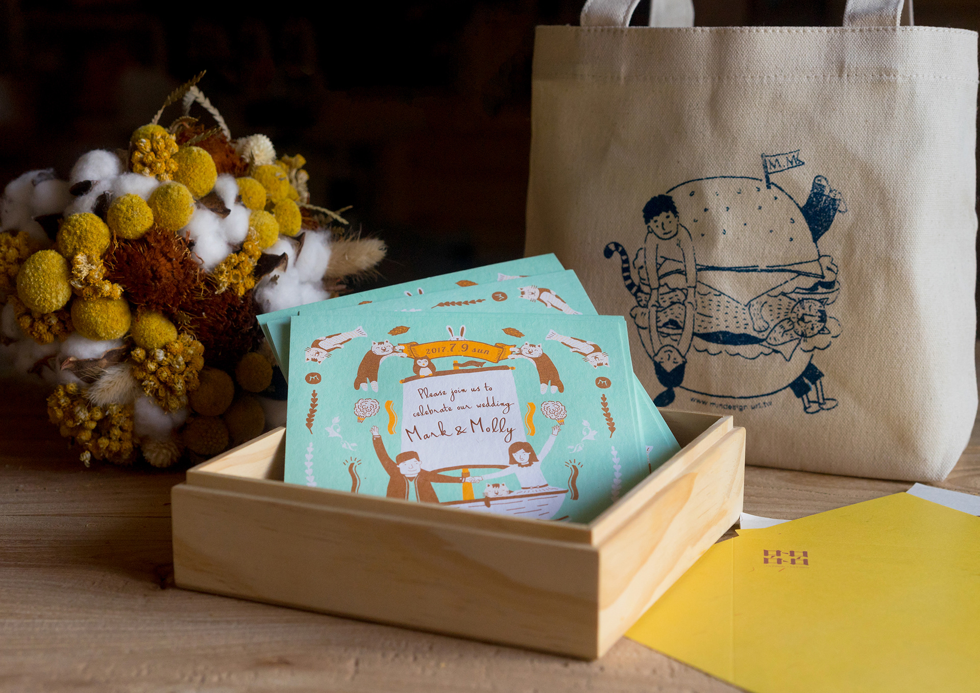屬於自己的婚禮邀請函,用了插圖設定。 事後整理起來還是印象深刻~畢竟這是人生大事啊。
