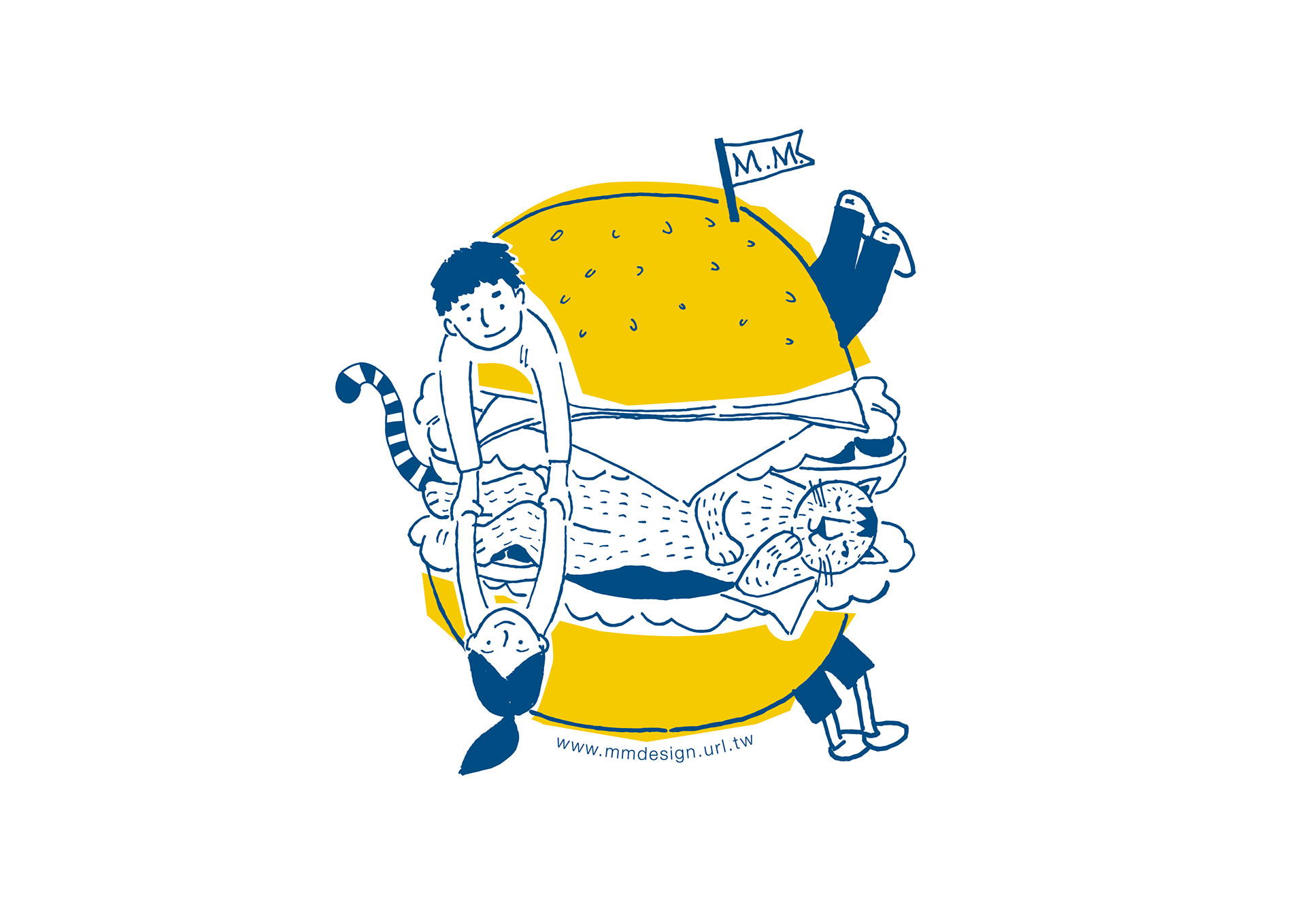 提袋圖案 / 我們,貓,就像漢堡ㄧ樣夾在一起。